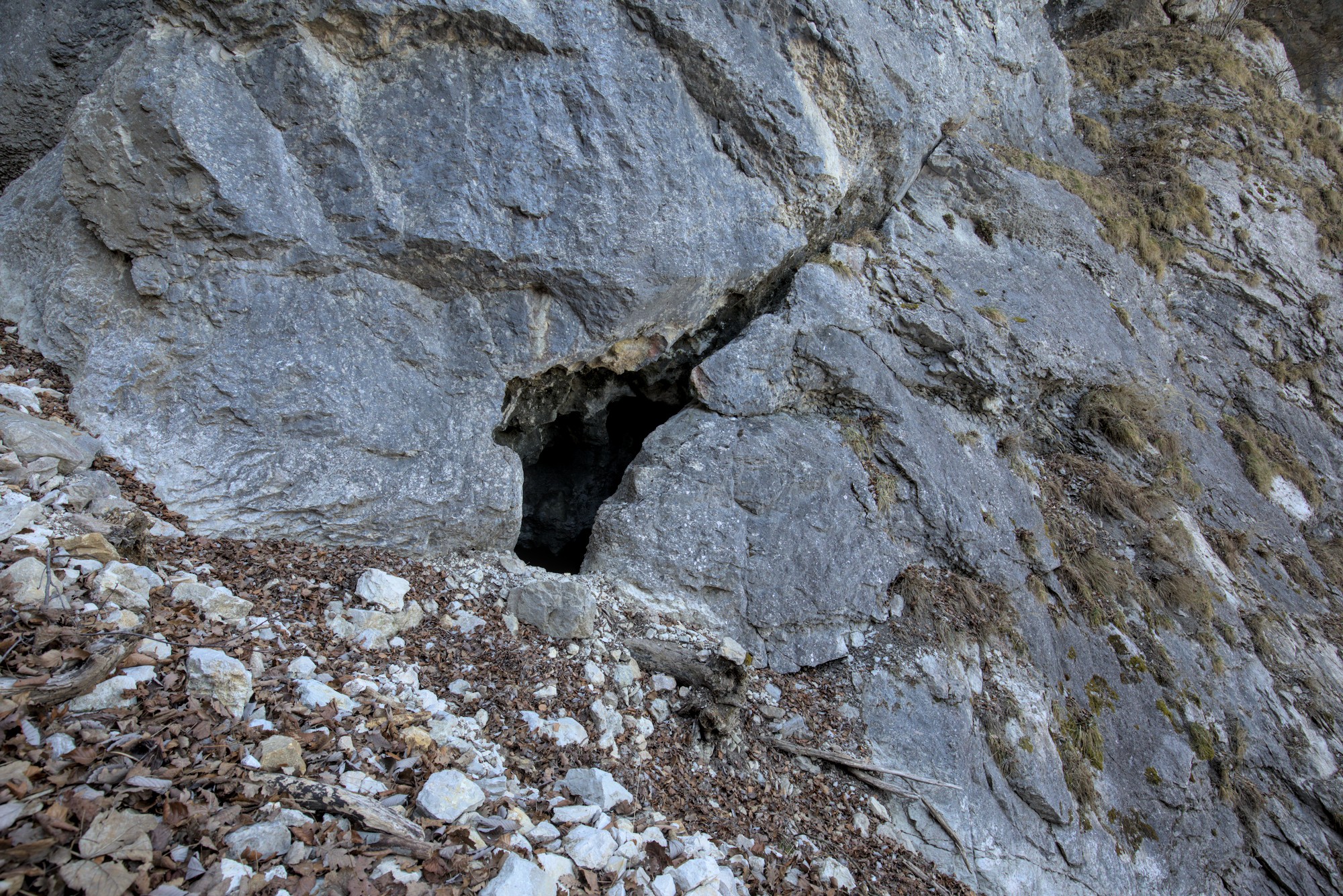 Sur la droite se trouve l’entrée de la Grotte Julliard, on peut y descendre à l’aide d’une chaîne.
