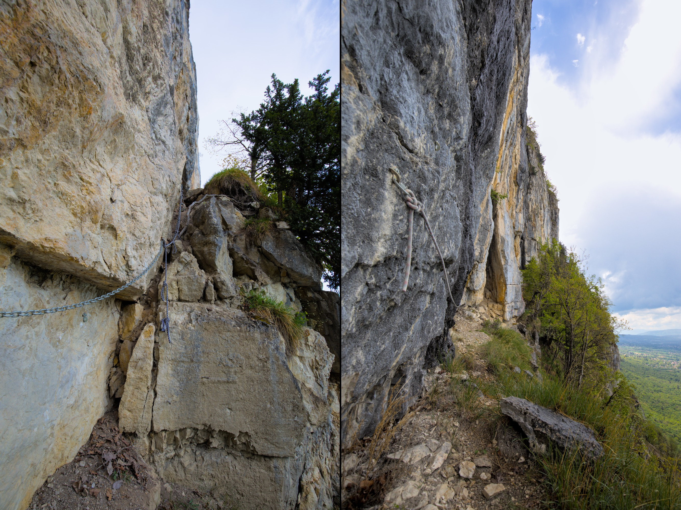 Le passage le plus exposé de la vire, heureusement bien équipé.