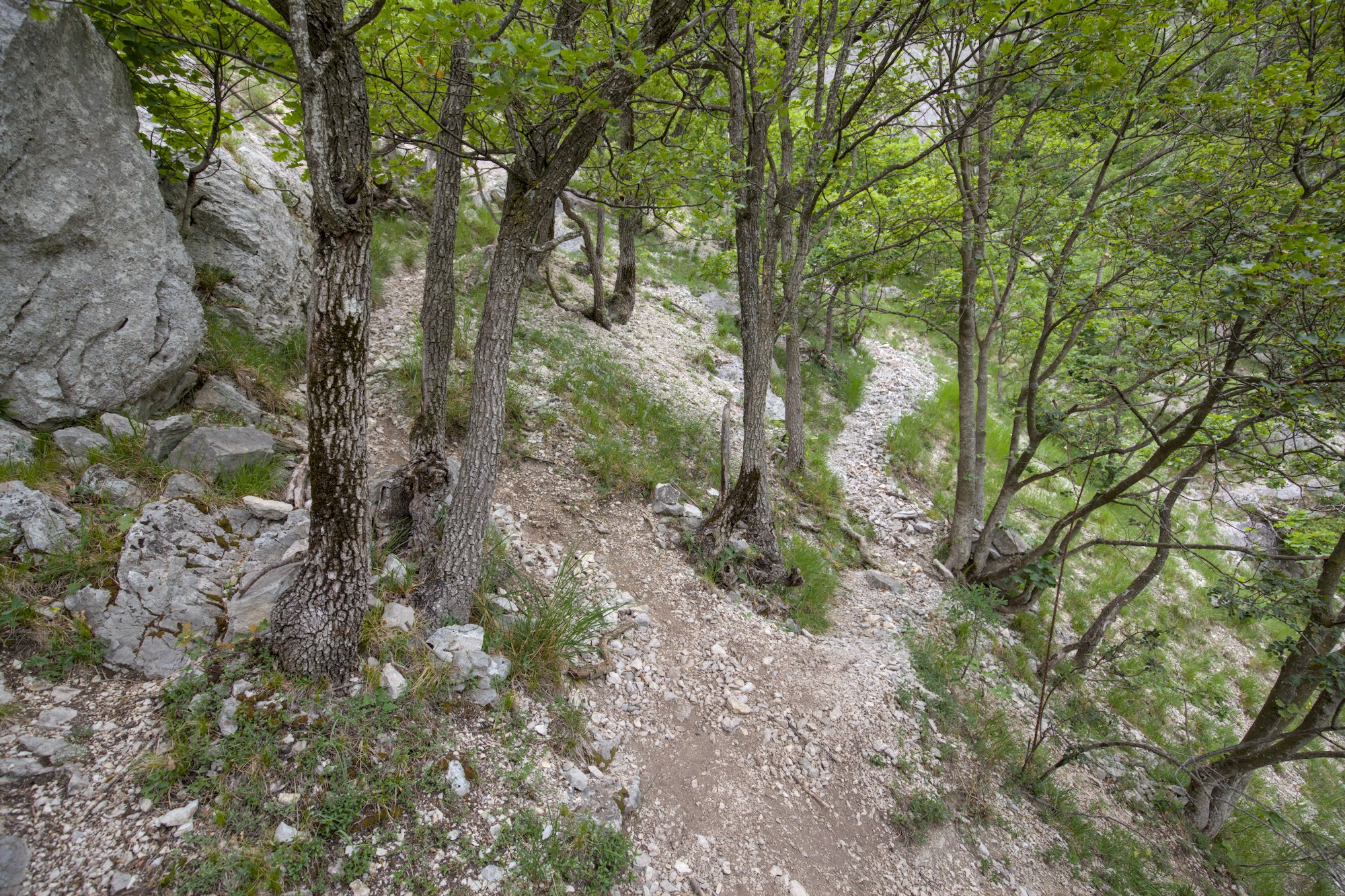 Le sentier est relativement visible ensuite, il tire légèrement vers la droite. Il est plus logique de prendre la bifurcation à droite bien que cela ne change pas grand-chose, les deux options se rejoignent après quelques mètres.