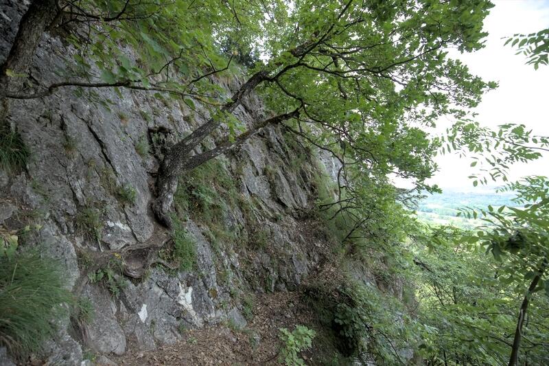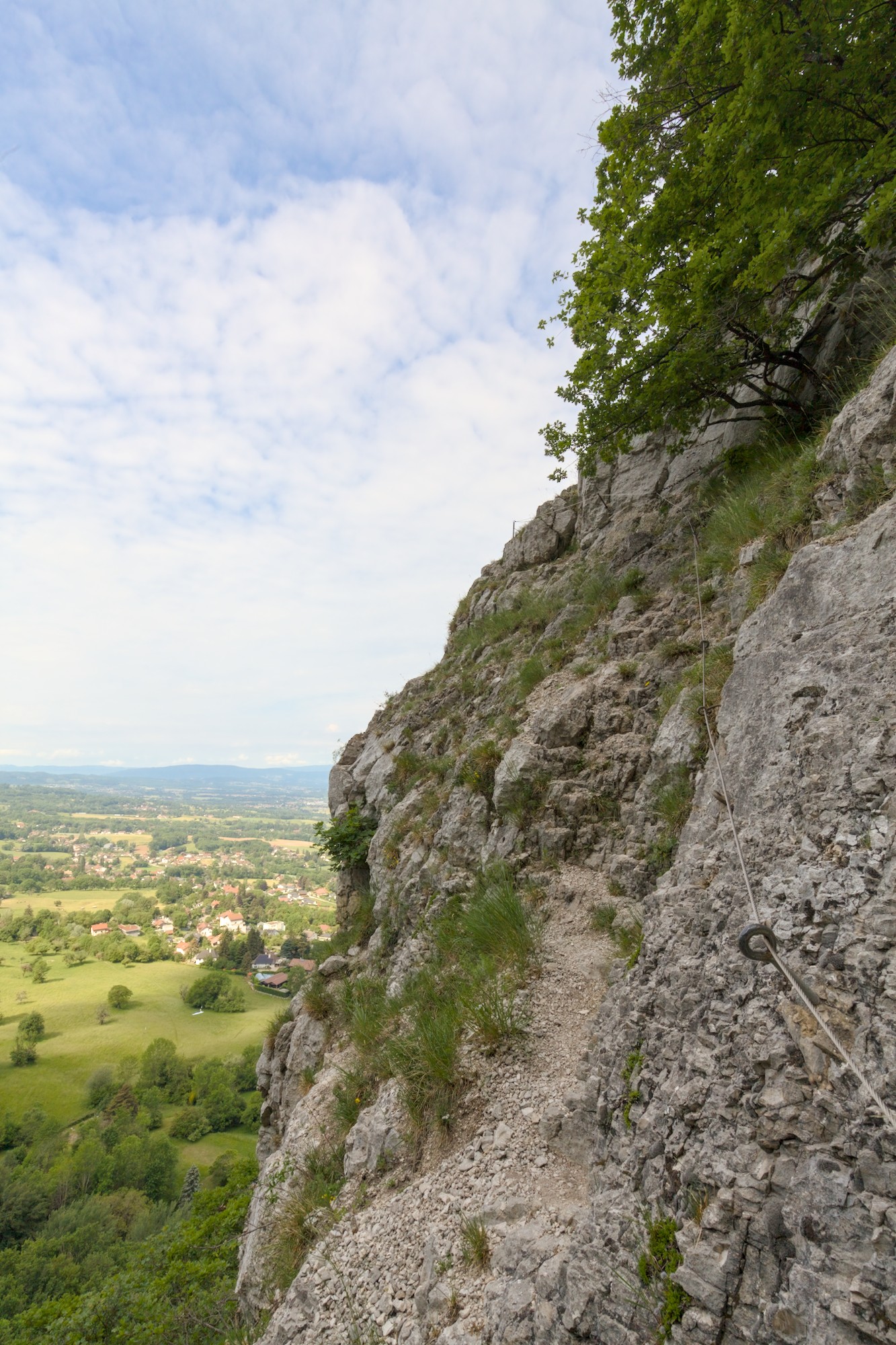 Le sentier escarpé qui succède au câble vertical, profitez de la sécurité du câble pour apprécier la vue.