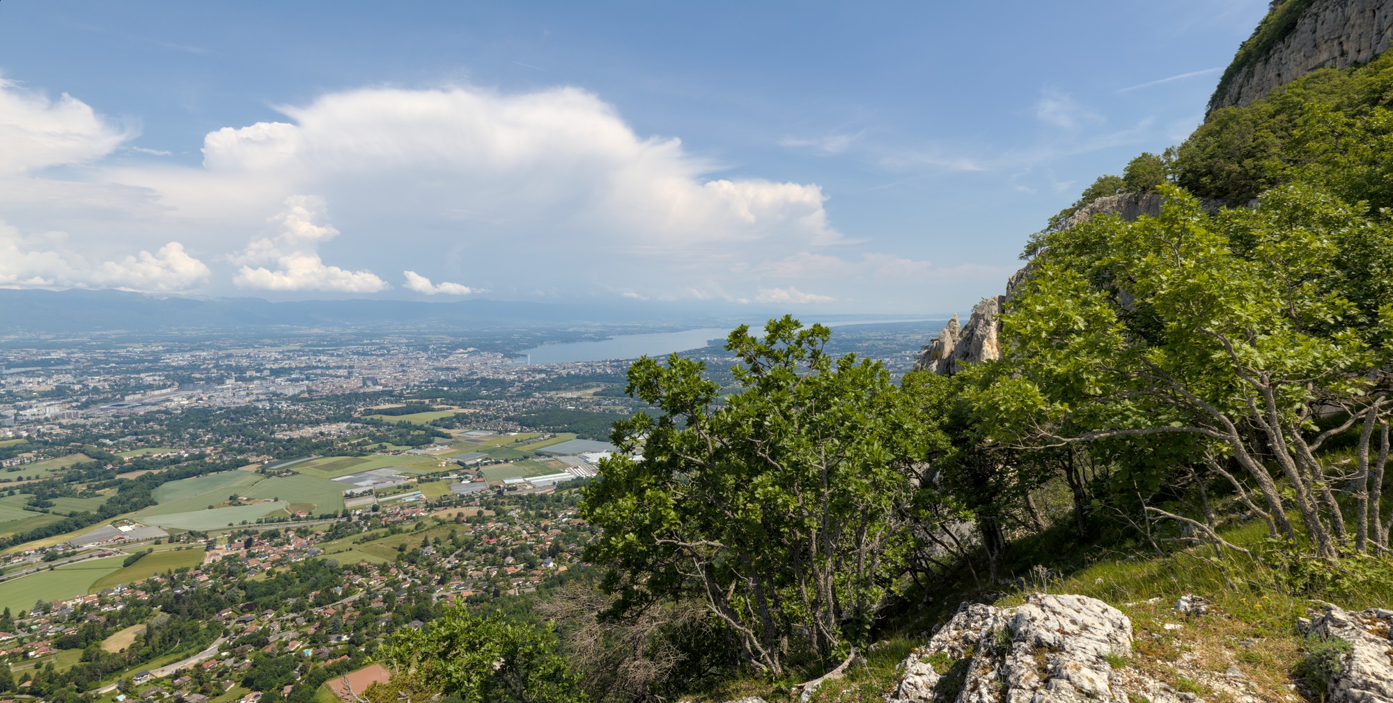 La vue sur Genève et l’Aiguille de la Mule depuis l’Esplanade des Étiollets.