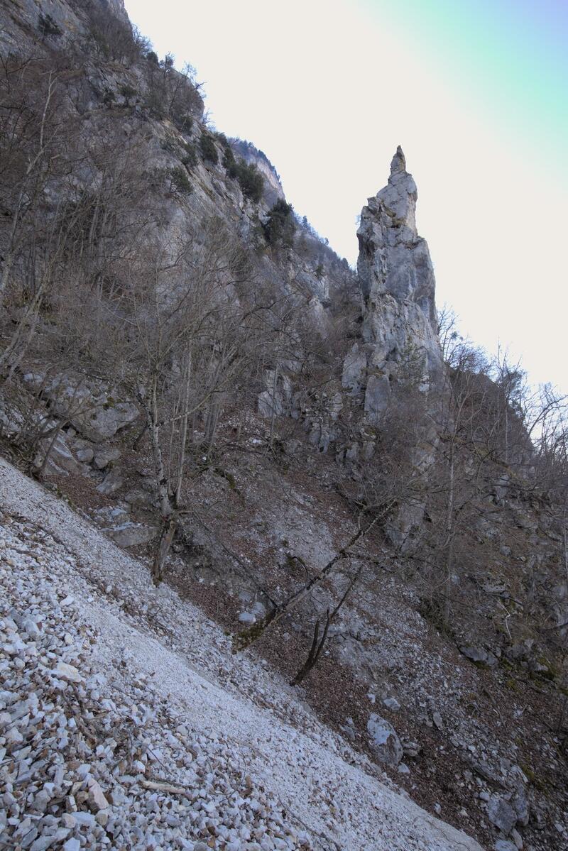 On peut rejoindre le Rocher de la Poupée par une ravine partant du bas de la Grande Gorge.