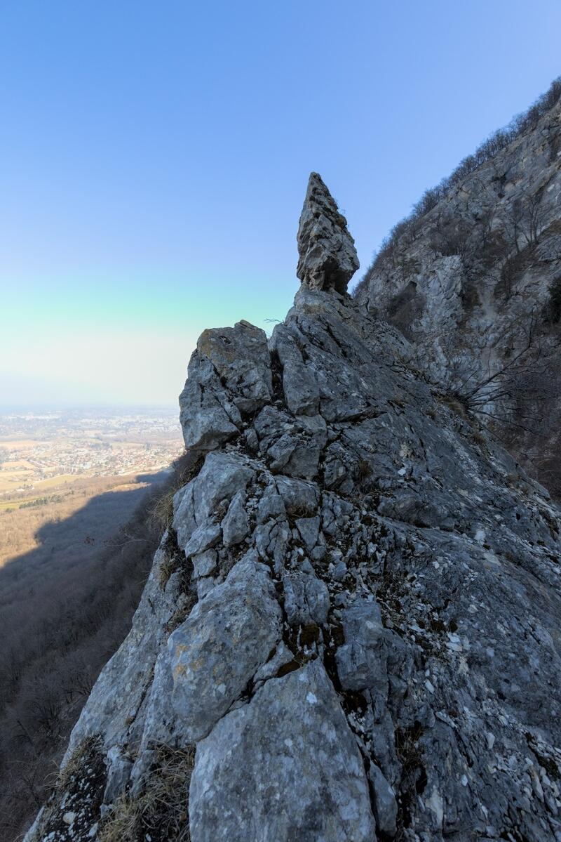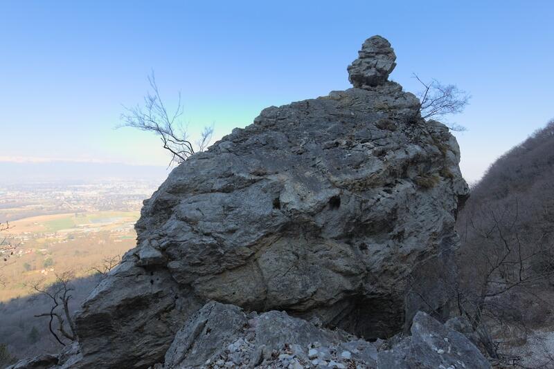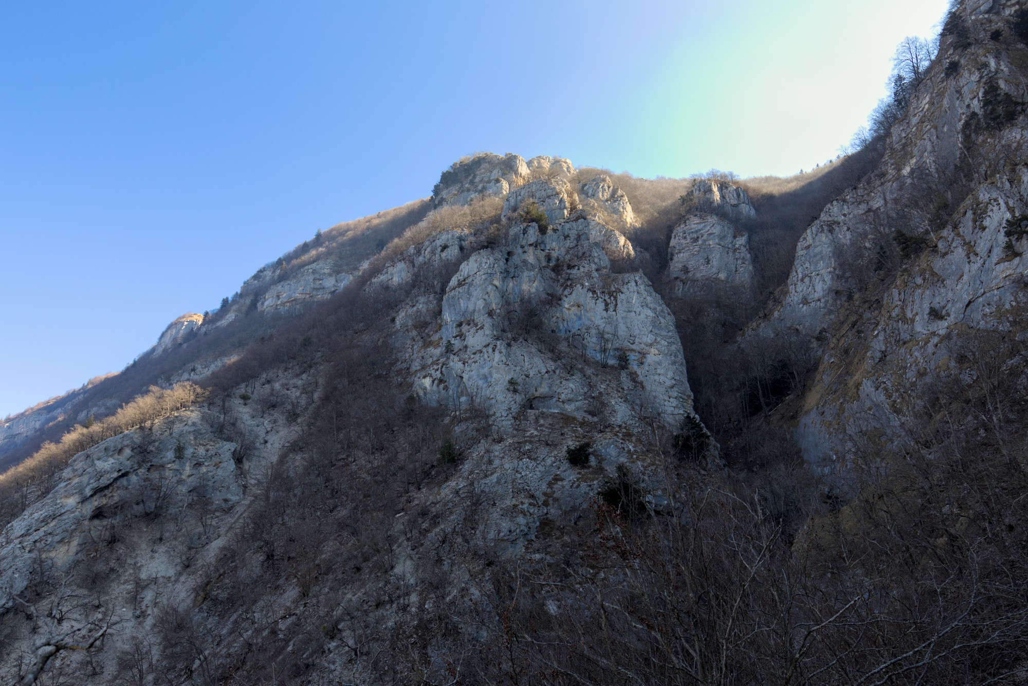 D’ici il faut remonter entre ce Rocher et la paroi du Salève1, mais juste avant, il est intéressant de remonter le fond de la gorge sur votre gauche pour découvrir le Moulin de l’Isère et la Grotte Julliard.