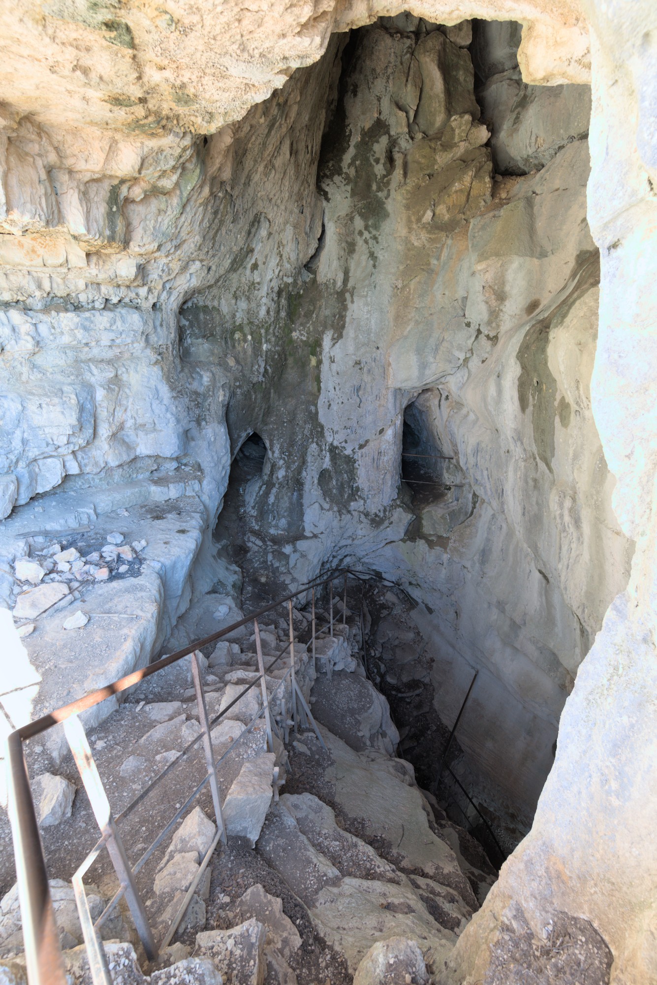 L’entrée et la sortie (sécurisée) du tunnel de la grotte