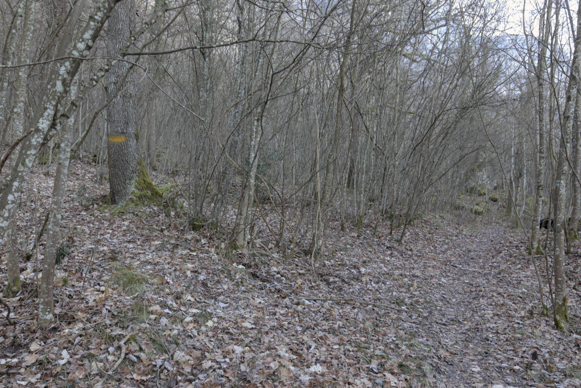 Deuxième bifurcation, vue dans le sens Buis -> Grande-Gorge avec la marque jaune.