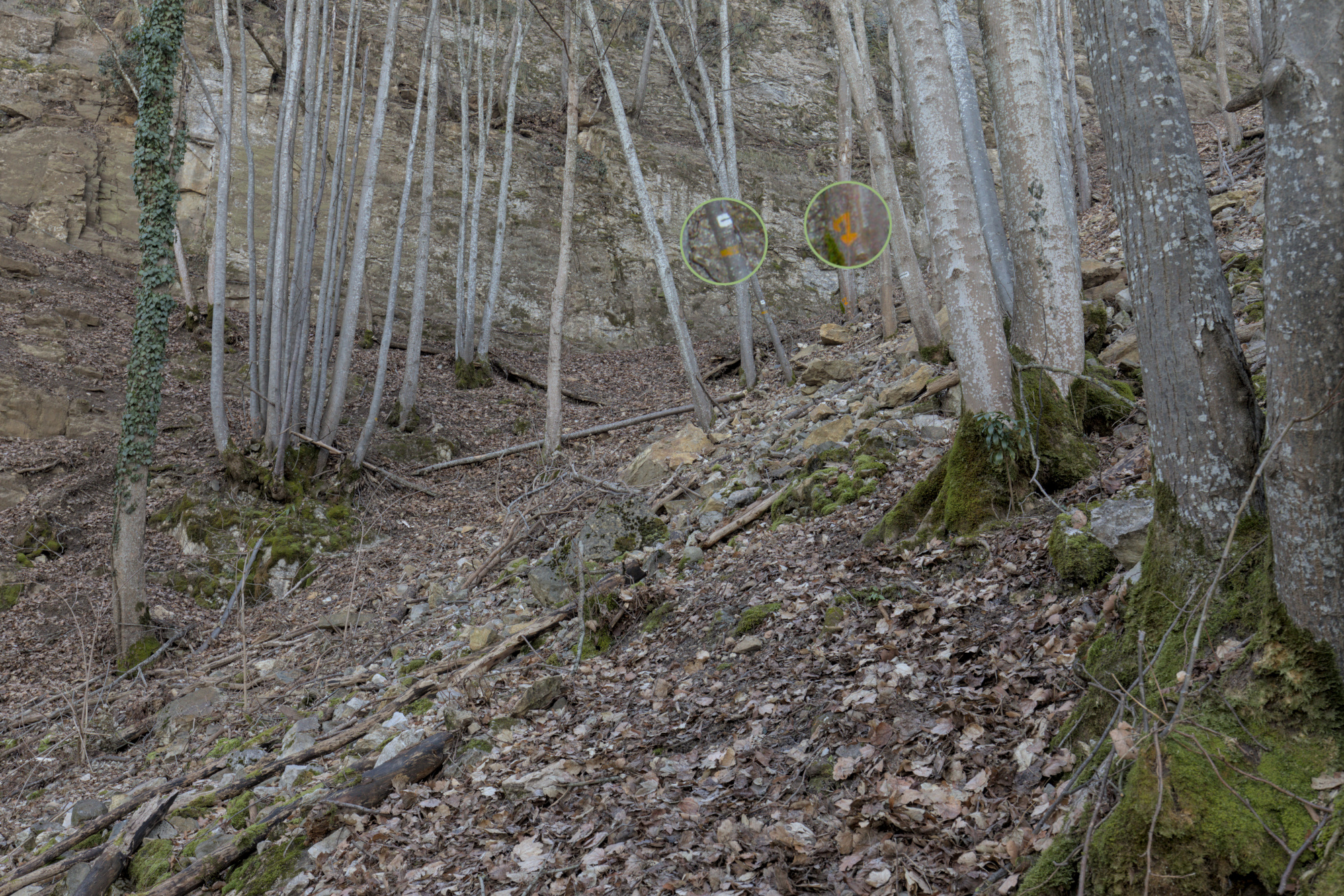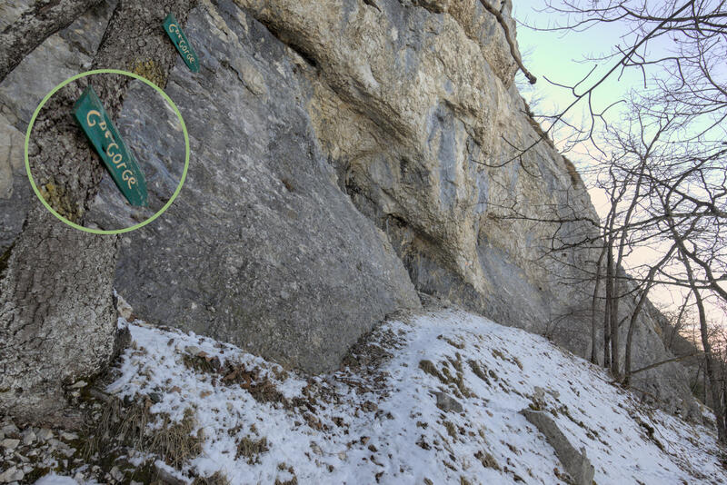 On vous laisse trouver le début de la trace gpx (réel intérêt de cette trace d’ailleurs, car vous n’en aurez plus vraiment besoin à partir d’ici), sur le sentier large et balisé longeant la base du Salève, entre la carrière et les tennis. La trace commence sur un sentier bien visible (profitez en bien), que l’on suit, lorsque celui-ci fait mine de redescendre, à mi-chemin entre le départ de la Grande Gorge et celui du sentier des Buis, tourner à droite en direction de la face du Salève.